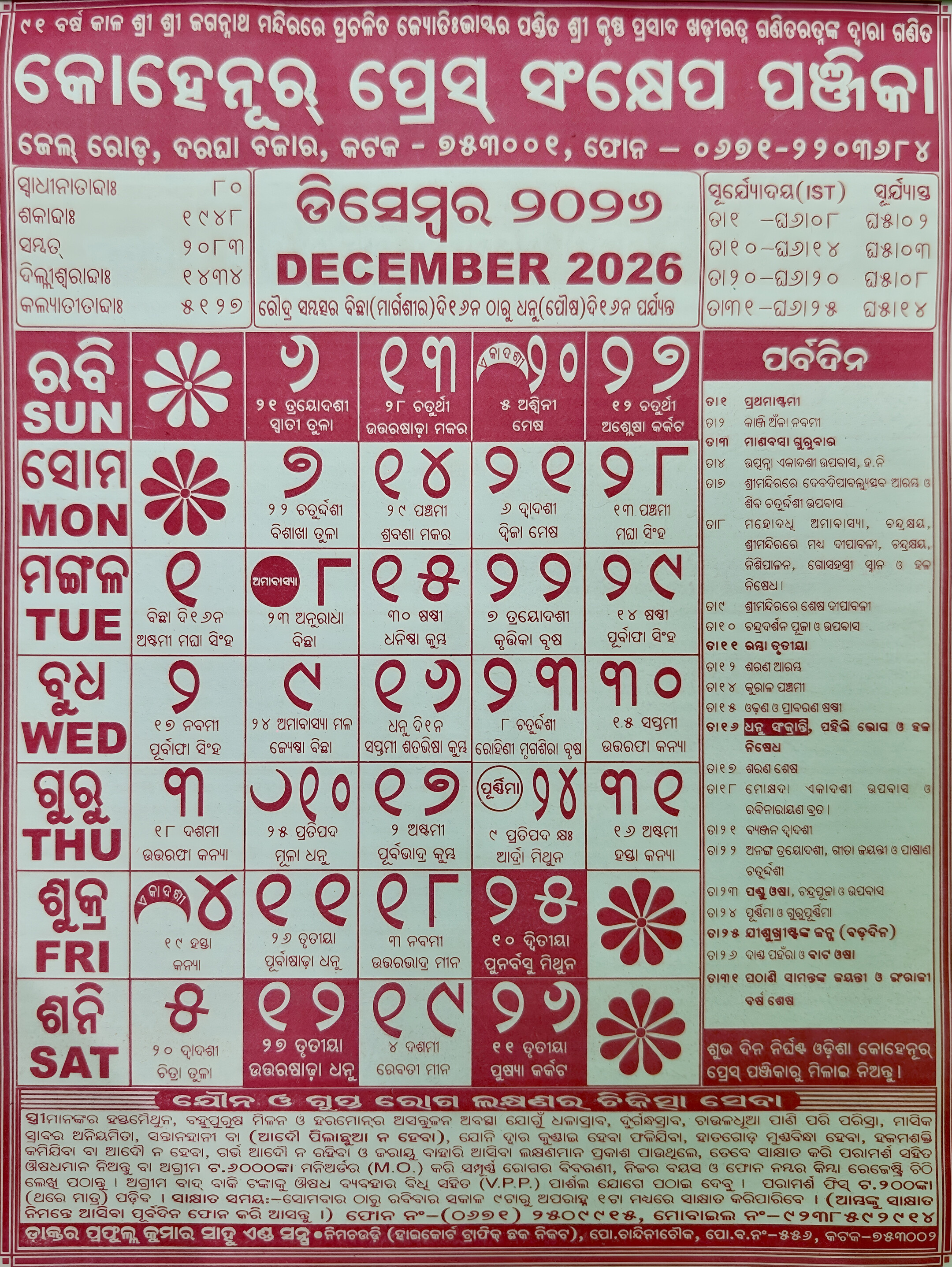 Detailed Insights: Odia Kohinoor Calendar December 2026
