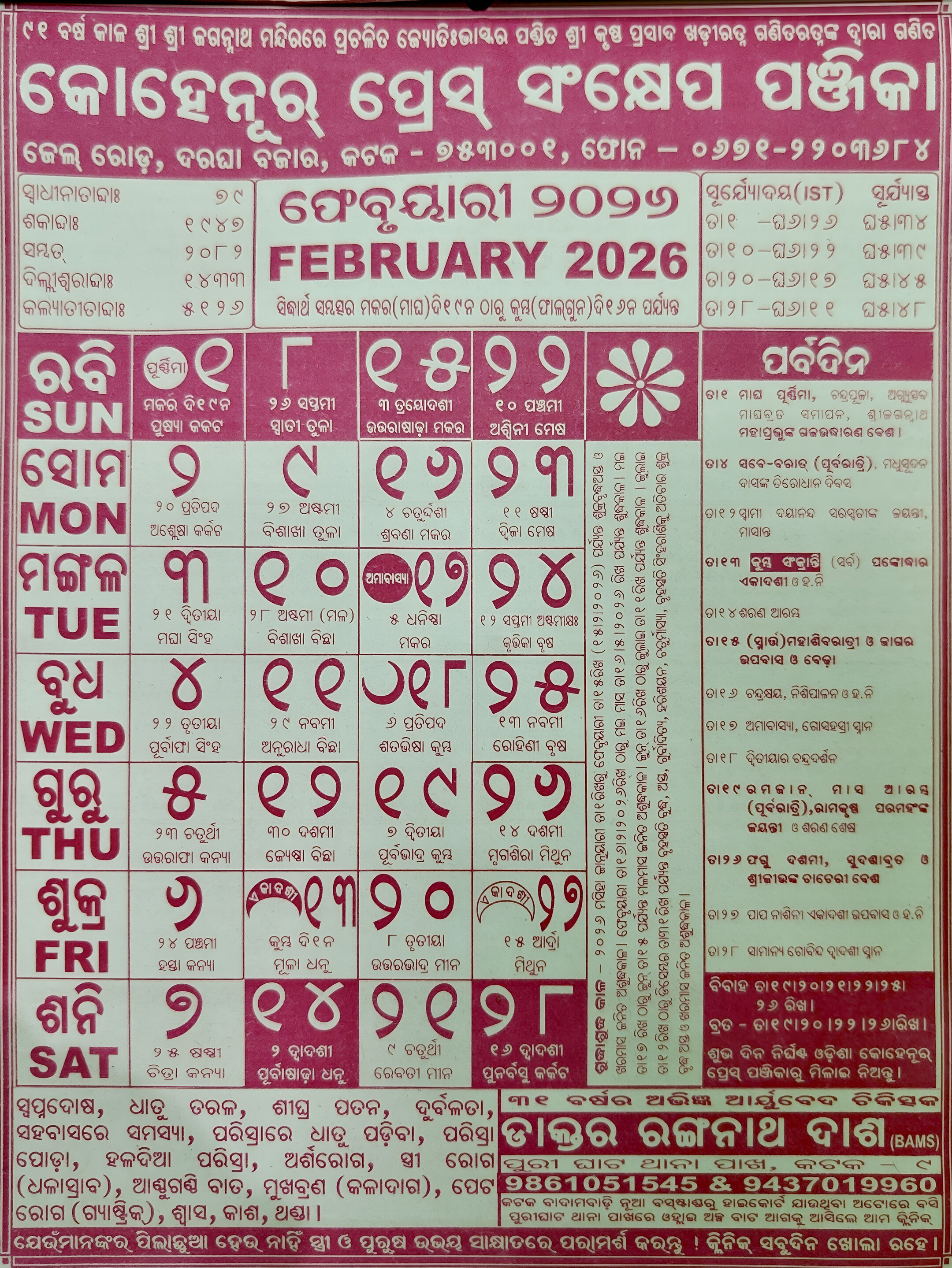 Detailed Insights: Odia Kohinoor Calendar February 2026
