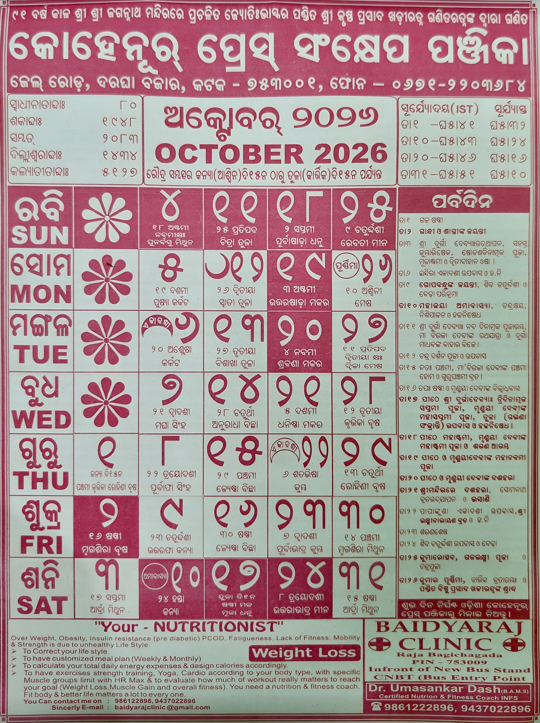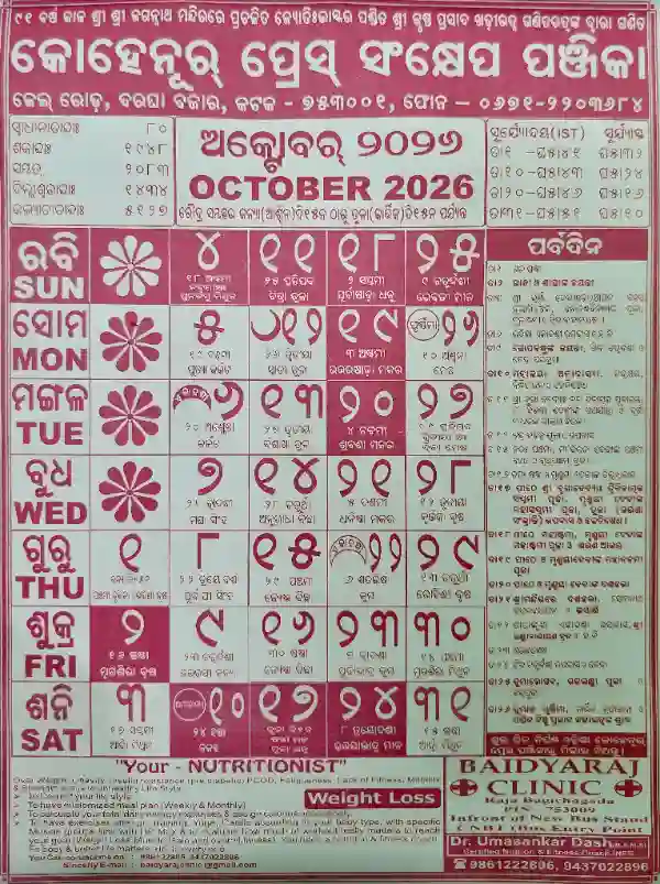Detailed Insights: Odia Kohinoor Calendar October 2026