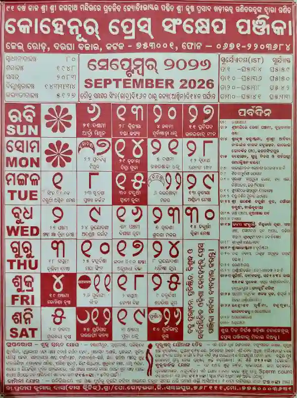Detailed Insights: Odia Kohinoor Calendar September 2026